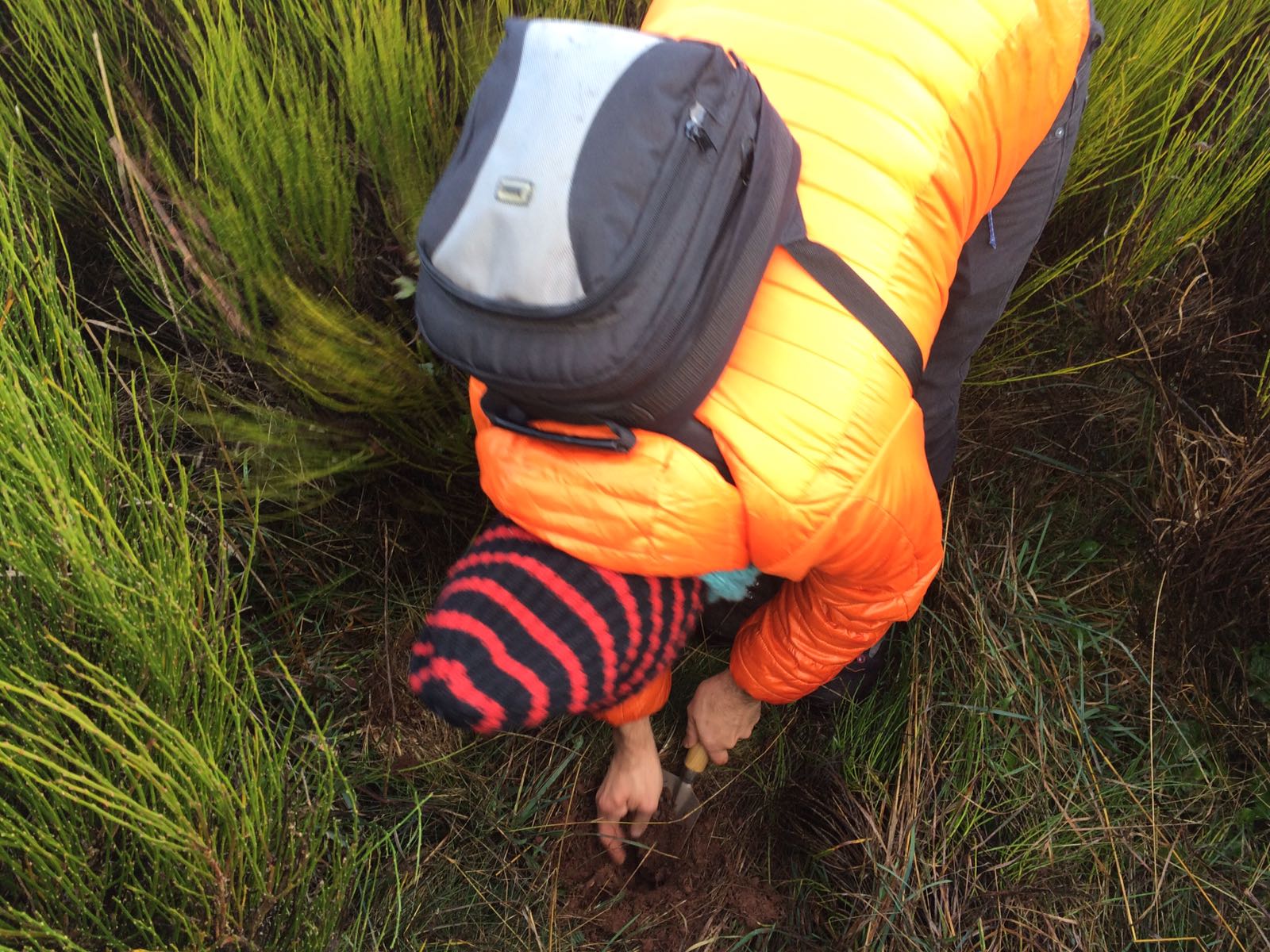 Hemos recogido muestras de la flora que hemos encontrado, para que nuestro experto la identifique, catalogue y así poder escoger los cepellones más adecuados para el terreno. El ph del suelo nos dio entre 4-5, es decir, ligeramente ácido, con muchos nutrientes. Esperamos volver pronto, para volver a recoger más muestras porque el suelo estaba húmedo y para el estudio no era lo más adecuado. De todos modos es una alegría encontrar humedad en la península.